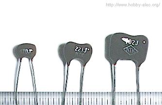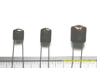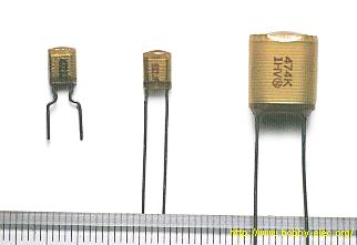 Bên trái trong bức ảnh là một "tông đơ", sử dụng gốm làm chất điện môi. Bên cạnh nó bên phải là một cái sử dụng màng polyester cho chất điện môi.