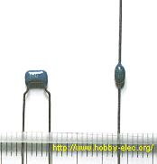 Các tụ điện bên phải có điện dung 103 (10 x 10 3 pF = 0,01FFF). Chiều cao là 4 mm, đường kính của phần tròn là 2 mm.