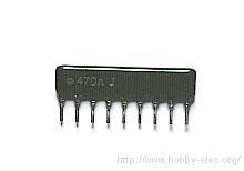 Điện trở này được gọi là mạng điện trở Single-In-Line (SIL). Nó được làm với nhiều điện trở có cùng giá trị, tất cả trong một gói. Một bên của mỗi điện trở được kết nối với một bên của tất cả các điện trở khác bên trong. Một ví dụ về việc sử dụng nó là điều khiển dòng điện trong mạch cung cấp năng lượng cho nhiều điốt phát sáng (LED).