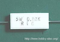 | Bức ảnh trên bove là điện trở bằng gốm (hoặc xi măng) 5W và có chiều cao 9 mm, sâu 9 mm, rộng 22 mm. |