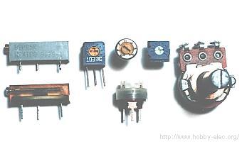 Trong ảnh bên trái, điện trở thay đổi thường được sử dụng cho các điều khiển âm lượng có thể được nhìn thấy ở phía bên phải. Giá trị của nó rất dễ điều chỉnh.