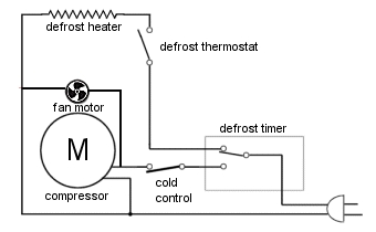 Timer có chức năng ngắt điện vào máy nén và cấp điện cho hệ thống điện trở xả đá để tẩy tuyết dàn lạnh. Tùy theo cấu tạo của timer, thời gian xả đá có thể 6h, 8h, 12h, 24h (thông thường ở Việt Nam lạnh lạnh dùng timer 8h). Thời gian xả đá từ từ 18 - 30 phút.
