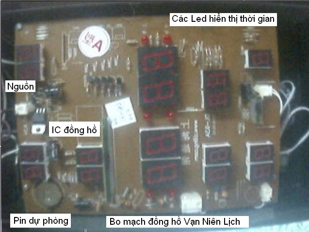 Hình vẽ cho thấy các thành phần linh kiện trên bảng mạch dùng chỉ thời gian: