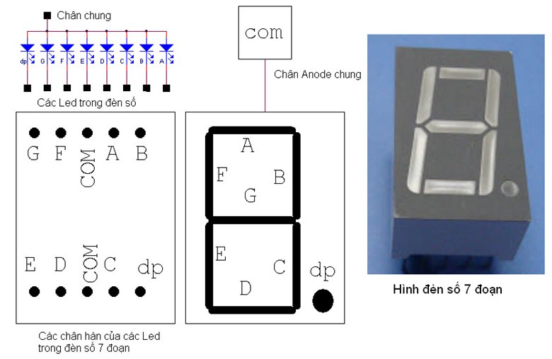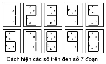 * Các đèn số với Led 7 đoạn (thường là màu đỏ để đèn có hiệu suất cao, độ sáng mạnh, ít hao điện). Bạn phải xác định được: