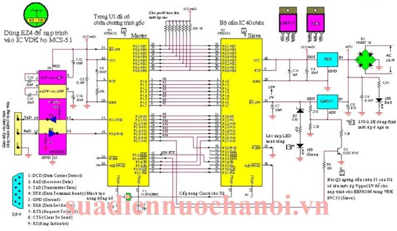 Sơ đồ mạch điện board nạp chương trình vào bộ nhớ EEPROM trong AT89C51: