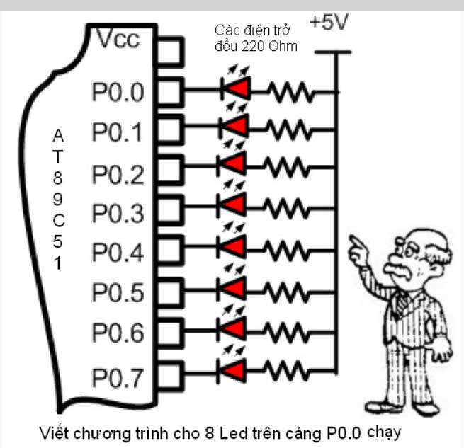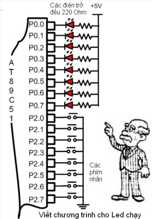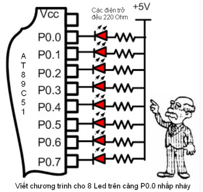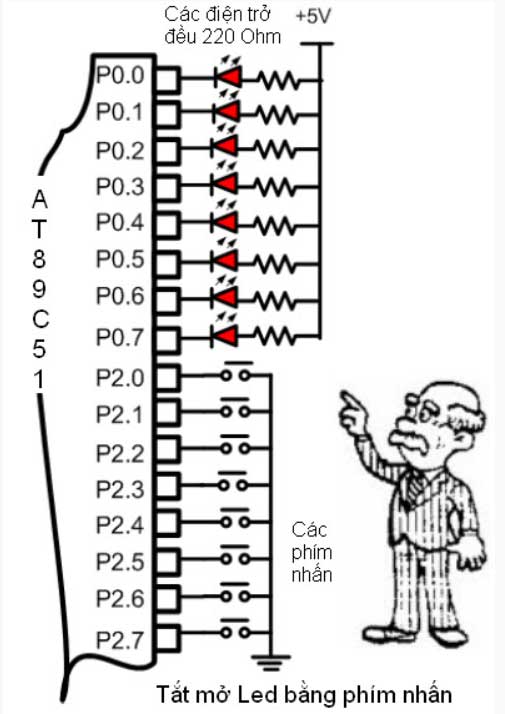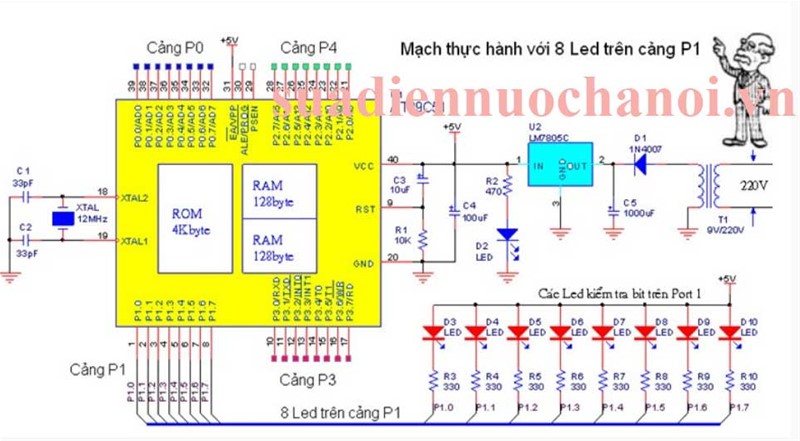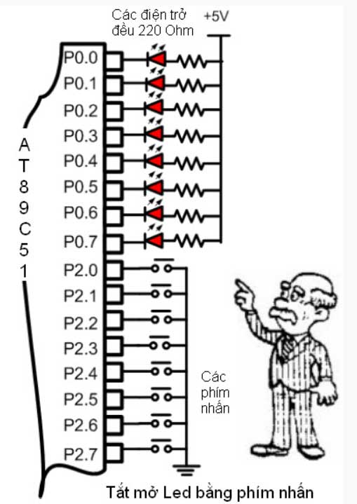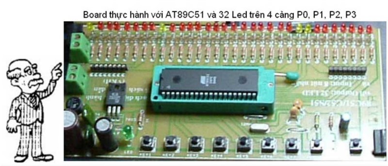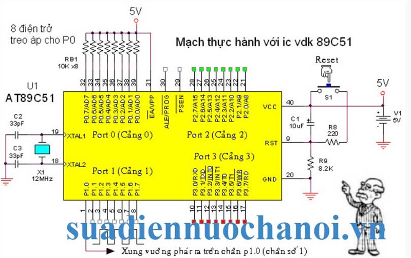 * Trên 8 chân của cảng P0 gắn thanh 8 điện trở RB1 (10Kx8) dùng để treo áp.