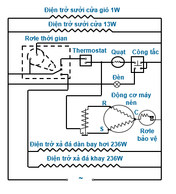 Sơ đồ tủ lạnh xả đá tự động